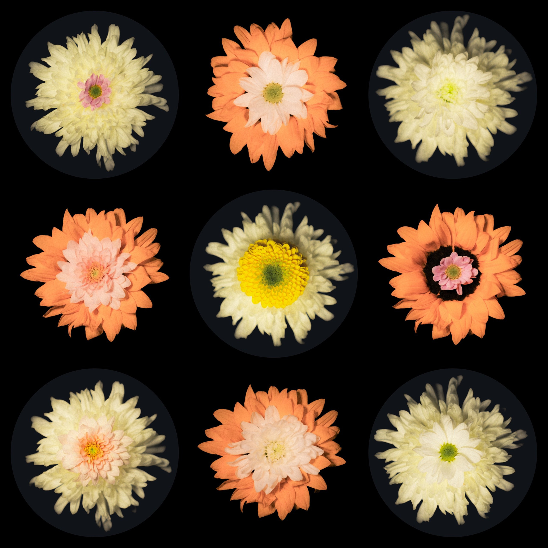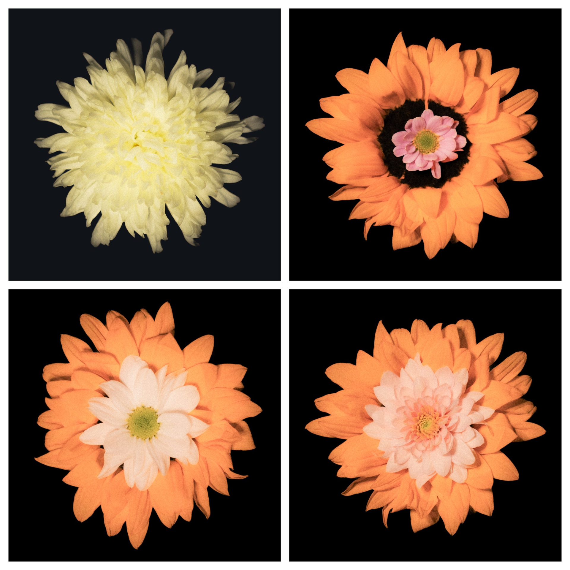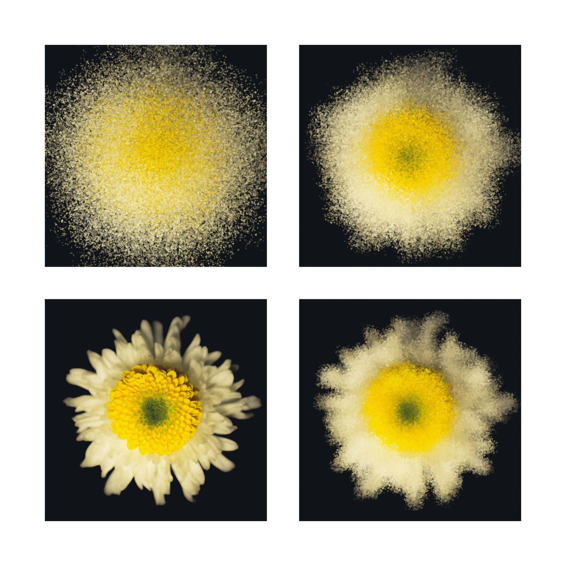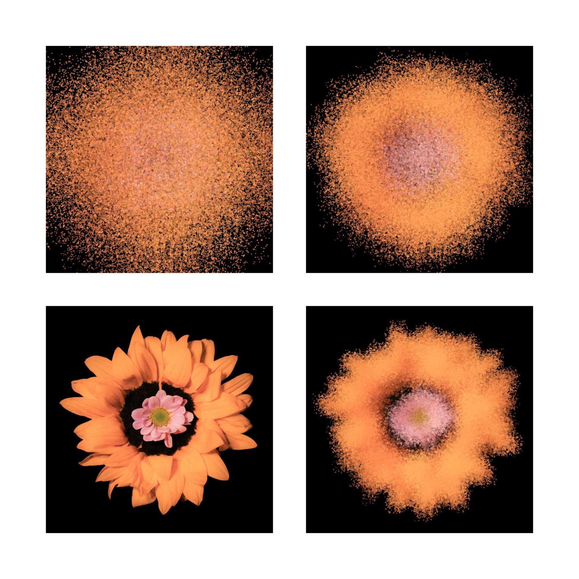 В этой серии я исследую форму цветка как самостоятельный визуальный объект. Меня интересует не столько ботаническая точность, сколько пластика, симметрия и взаимодействие цвета. Чёрный фон выбран намеренно - он убирает лишний контекст и позволяет сосредоточиться на структуре лепестков, мягких переходах оттенков и внутренней архитектуре цветка.